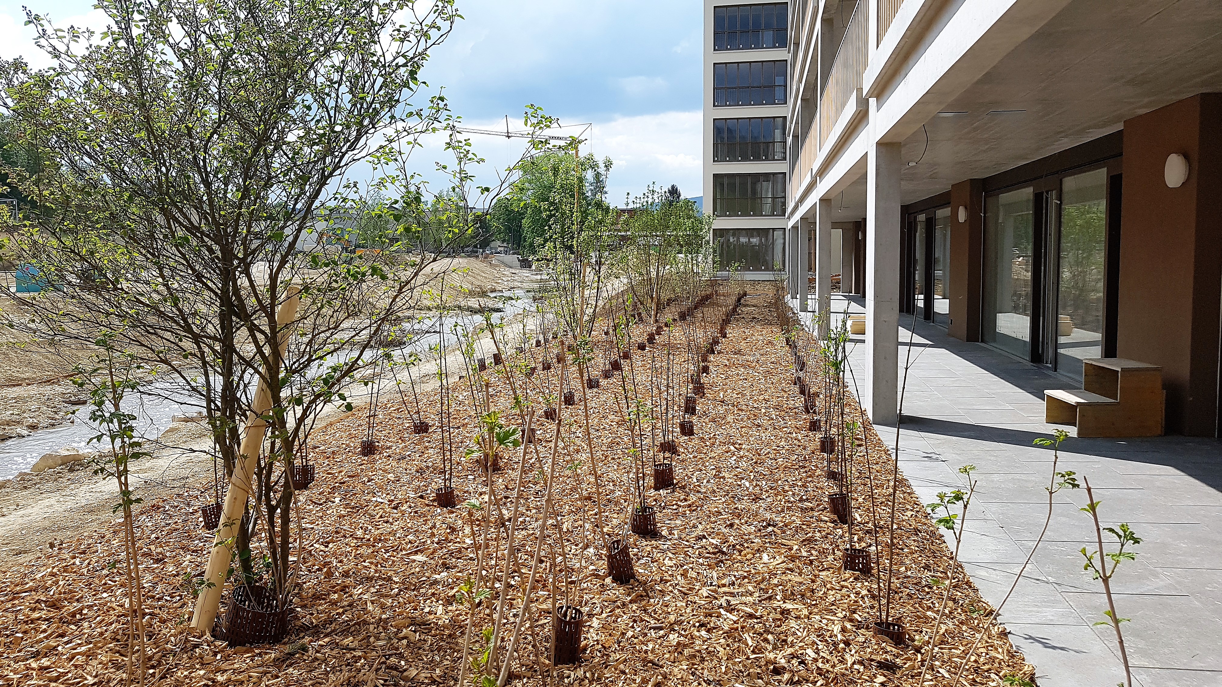In den letzten Tagen wurde die Umgebung mit Bäumen und Sträuchern bepflanzt und der Spielplatz wurde vorbereitet.
