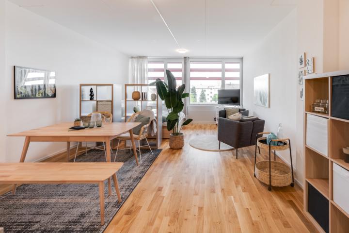 - Am Standort gibt es vier Serviced Apartments, welche über Fastspace kurzfristig und unkompliziert gemietet werden können.